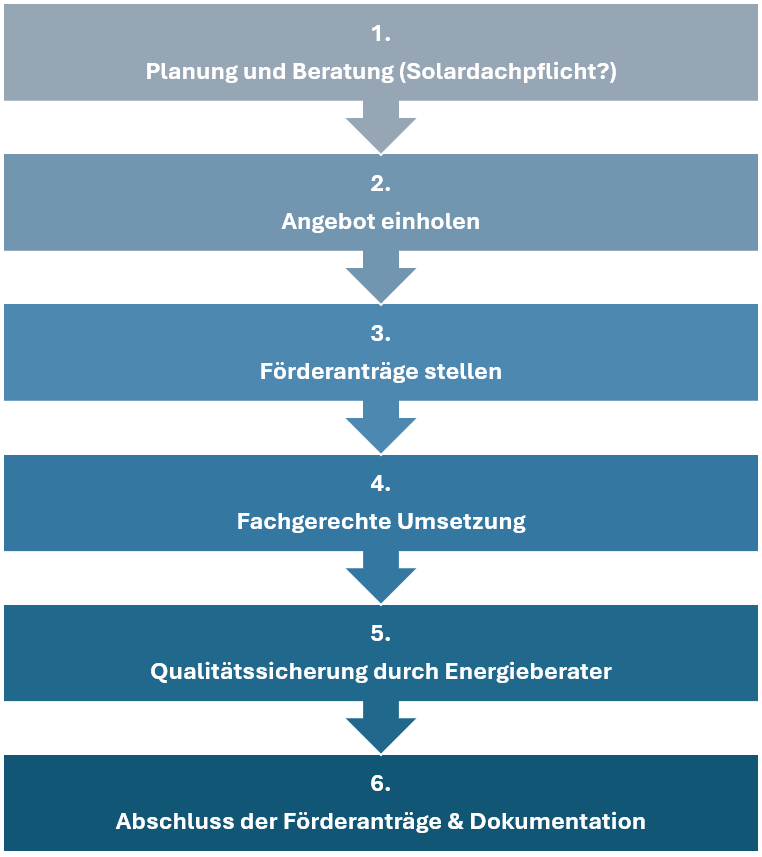 Bevor die Aufträge vergeben werden, müssen die Förderanträge gestellt werden. Dabei haben alle Fördermittelgeber ihre eigenen Anforderungen. Wir behalten für Sie den Überblick.