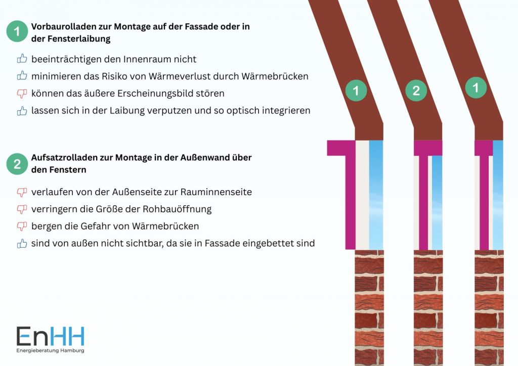 Vorsatzrollladen: Diese Rollläden werden vor dem Fenster montiert und sind somit von außen sichtbar. Der Rollladenkasten befindet sich außerhalb der Fassade und kann nachträglich an bestehenden Gebäuden angebracht werden1. Vorsatzrollläden sind flexibel einsetzbar und eignen sich besonders für die Nachrüstung, da sie unabhängig vom Fenster eingebaut werden können.